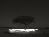 Verzaubert, leise, subtil. So sind die Landschaftsszenerien, in denen der Turiner Fotograf Ugo Ricciardi (* 1975) ein imaginäres Licht und Dunkel in perfekter Balance freisetzt. Eine Idee, die zufällig entstand, als er mit den Weihnachtslichtern seines Sohnes spielte, getragen von der Sehnsucht nach Einsamkeit, Stille und Natur. Das Grundprinzip besteht darin, diese Idee auf die Landschaft zu übertragen und die Intervention des Fotografen sichtbar zu machen, dies auf der Basis einer einzigartigen Inspirationsquelle: dem Unterbewusstsein. So verwandelt der Künstler ihm vertraute Orte in magische Visionen, in denen die Dunkelheit und das Mondlicht den Hintergrund für geheimnisvolle Lichtbilder abgeben. Hierfür ist die Verwendung von Schwarz und Weiß essentiell, was ermöglicht, dem Realismus der Farbigkeit zu entkommen und den Blick über die reine Darstellung hinaus in eine Ebene zu lenken, wo Raum und Moment absolut sind.